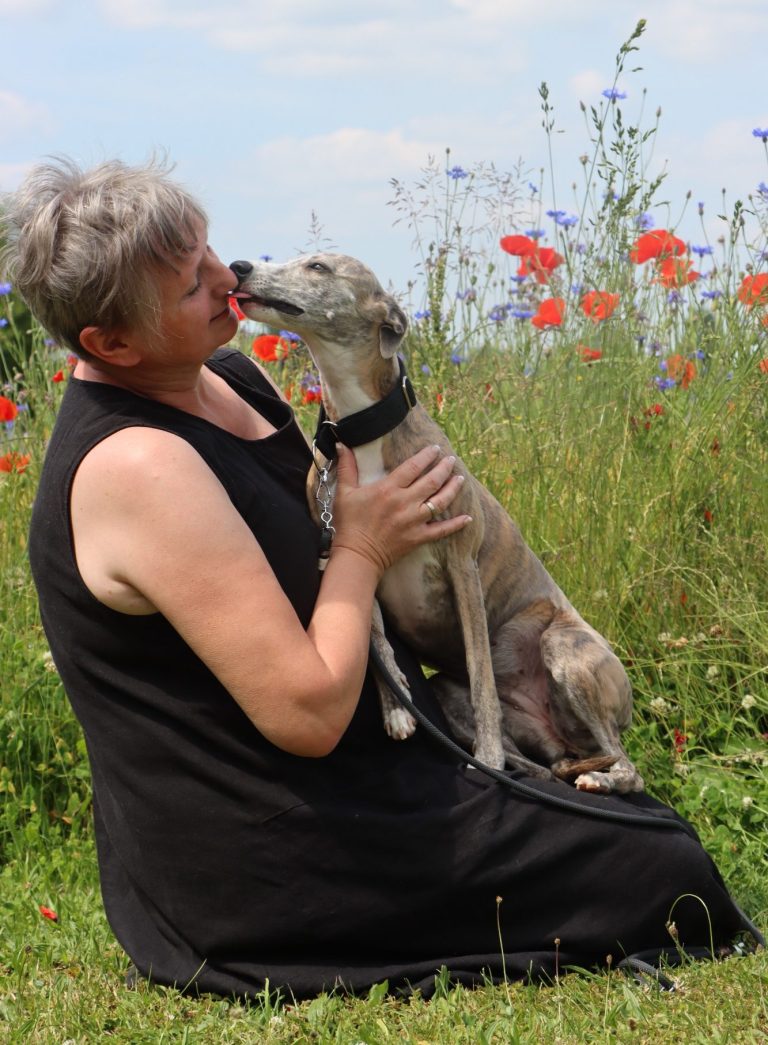 Heute lebe ich in einer netten kleinen Gemeinde im Lech-Donau-Tal, zusammen mit meinem heutigen Mann Peter, der Gott sei Dank meine Liebe zu den Whippets teilt. Wir holten uns unseren ersten Whippet "Kira" und 16 Monate später unseren zweiten "Mary". Ich bin der lieben Katta aus Rehau so dankbar für diese beiden Welpen, die sie mit soviel Liebe und Erfahrung großgezogen hat. Und weil wir die Beiden so toll finden, haben wir uns jetzt auch an das große Abenteuer Hundezucht gewagt.